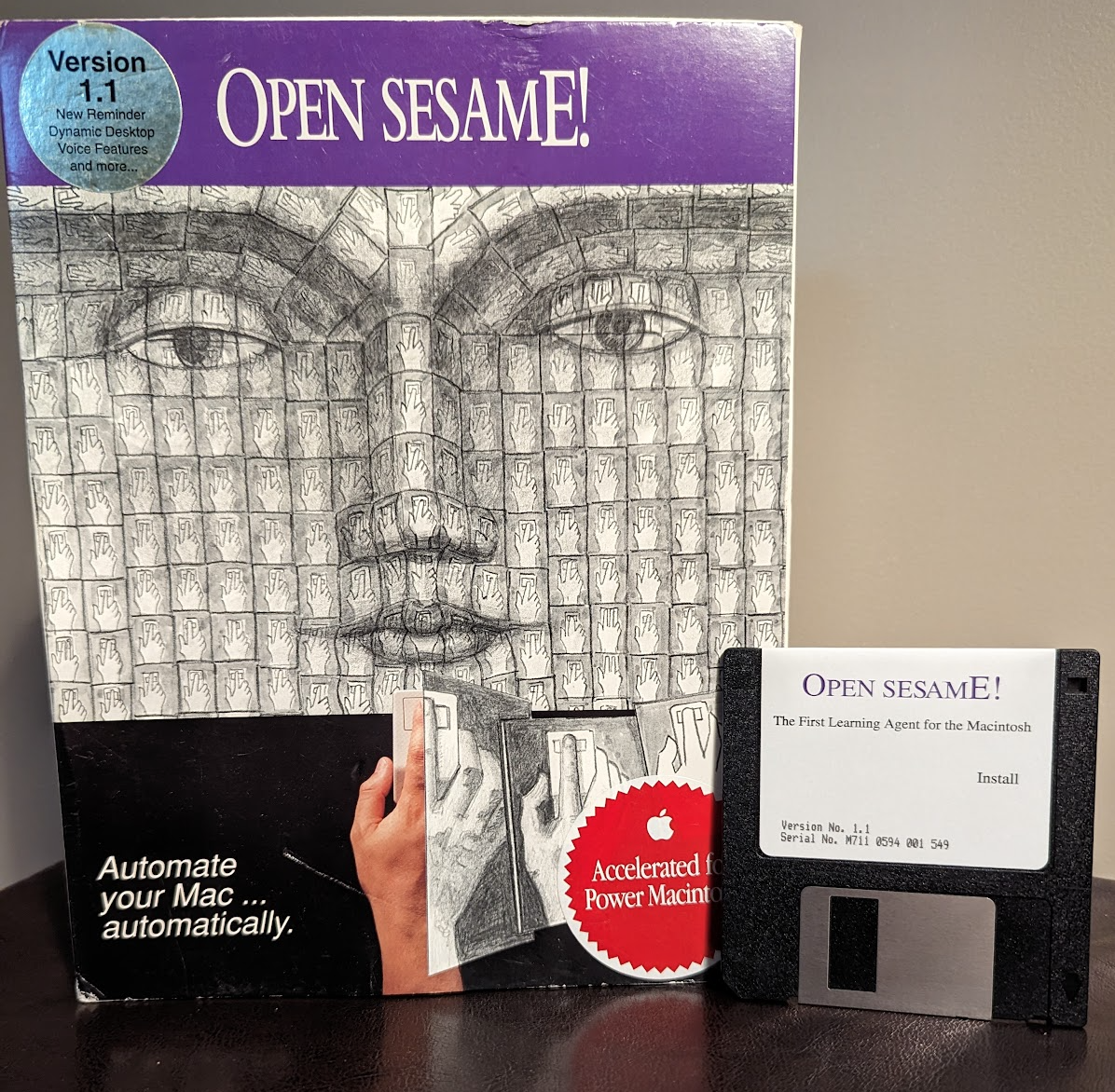 Released in 1993, Open Sesame! was the world's first hybrid learning agent for the Apple Macintosh, critically acclaimed and box-shipped to over 35,000 users. It used neural networks to identify user behavior patterns and symbolic expert systems to interpret the patterns and generate personalized rules to automate tasks, making it a first-generation hybrid neuro-symbolic AI system.